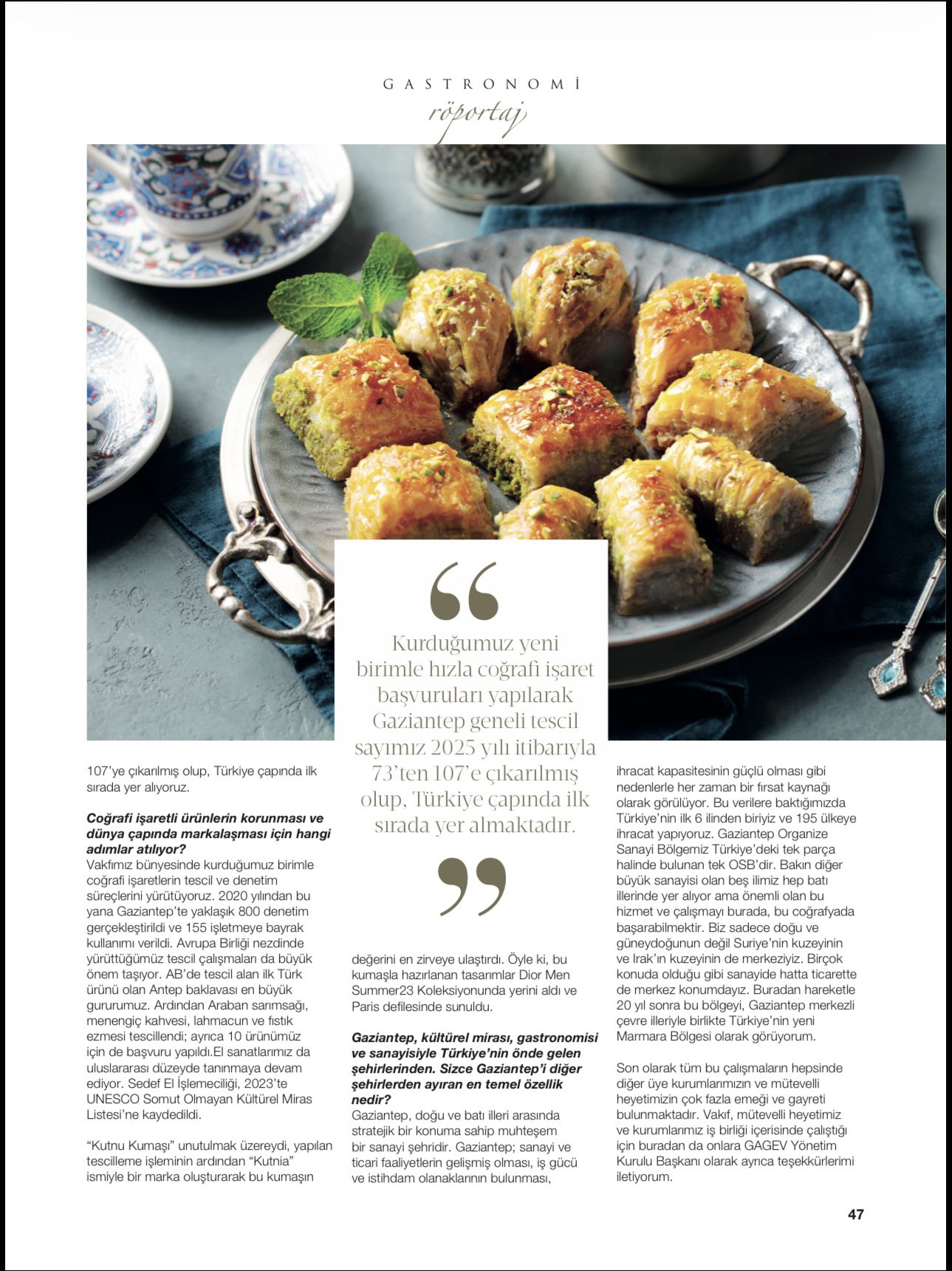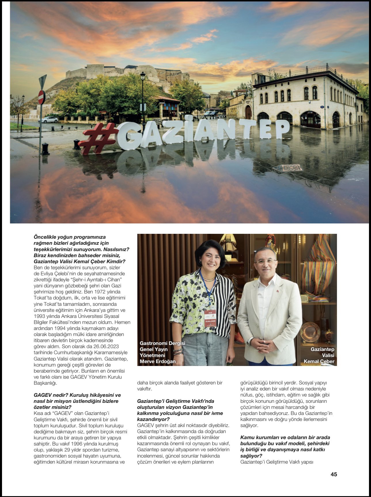 Vakıf Başkanımız Gaziantep Valisi Kemal Çeber ile @gastronomidergisi Genel Yayın Yönetmeni Merve Erdoğan ile gerçekleştirdiği röportajda, GAGEV’in şehrin gelişimindeki stratejik rolünü, kurumlar arası iş birliğiyle ortaya çıkan “Gaziantep Modeli”ni ve bu modelin Türkiye için nasıl örnek teşkil ettiğini anlattı.